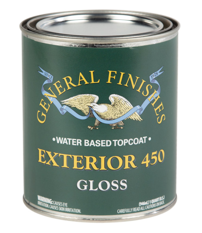 Exterior 450 provides a clear drying tough, protective finish that will withstand the rigours of the sun, rain, and wind. It is suitable for vertical surfaces such as fences, patio furniture, garage doors, entrance doors, outdoor kitchens and interior windows. It is not recommended as a deck finish. Fortified with UV absorbers to stabilise the finish, Exterior 450's built-in mildewcide retards mould and mildew growth. Tough and flexible, it will resist the expansion and contraction of the wood through hot summers and cold winter. Exterior 450 performs well as a clear coat or as an optional topcoat over General Finishes Milk Paint. It can also be used as a tint base to create custom colours. Warning: We do not recommend Exterior 450 stains or topcoats for exotic woods Ipe, Teak, or other dense oily woods that will get exposure.